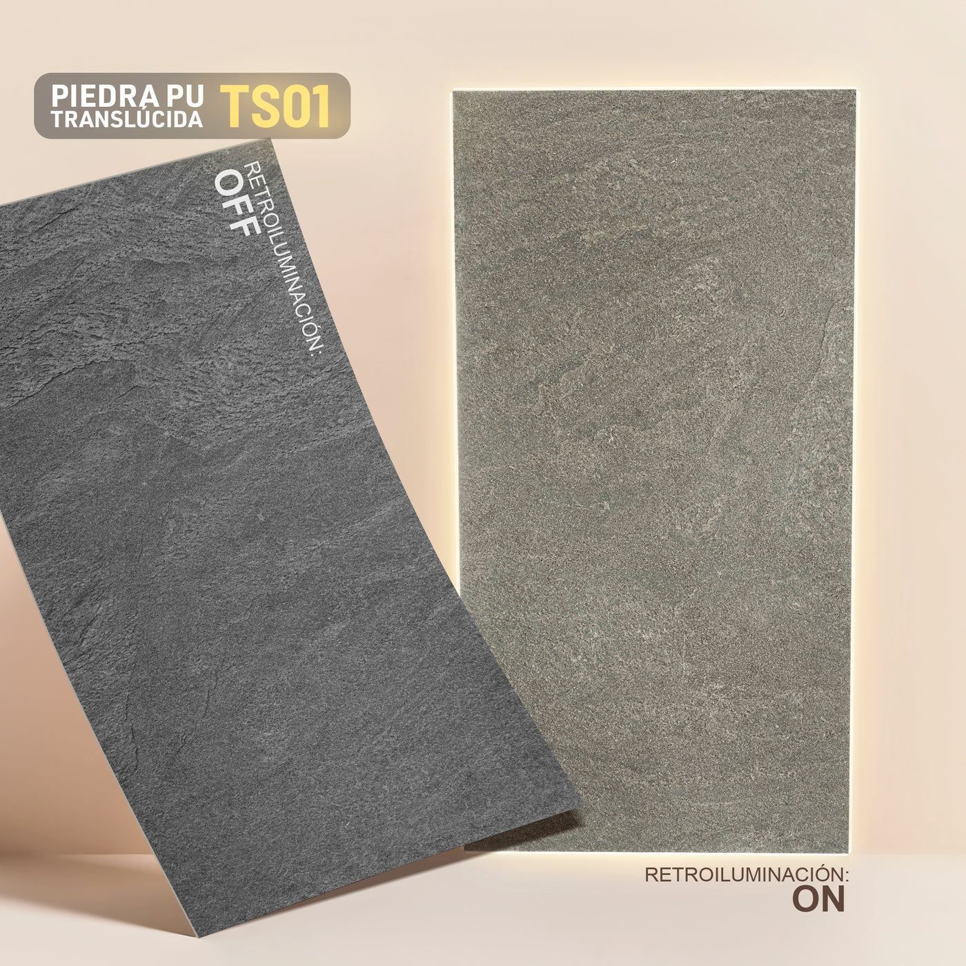 La Piedra Translúcida es un panel ultradelgado de piedra natural real, con un espesor de 3 mm y un nivel de translucidez del 30% al 70%, permitiendo crear muros iluminados de alto impacto visual. Su composición combina piedra auténtica con resina y fibra de vidrio, logrando un material flexible, ligero y resistente.