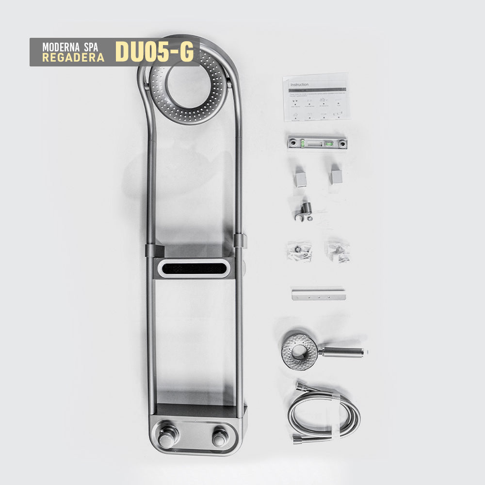 Cuenta con un cabezal giratorio de 360° que proporciona una pulverización múltiple tipo lluvia, creando una sensación envolvente y relajante. Su sistema de alta precisión permite ajustar tanto el flujo como la temperatura del agua con total facilidad.